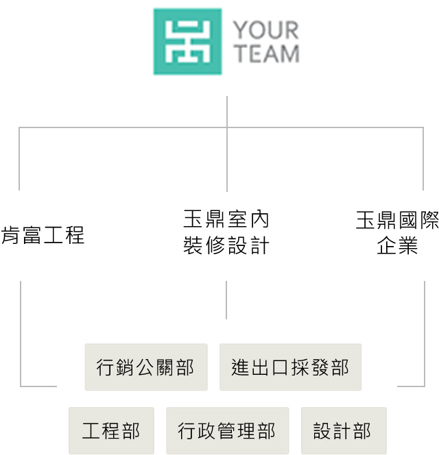 玉鼎以肯富工程為首在業界發展數十年,秉持著『真誠踏實的經營模式,堅持專業領域精益求精的態度』,培養了作工精緻細膩的木工、油漆、水電…等專業班底。為因應產業與客戶多樣化的需求,並於2005年成立玉鼎室內裝修設計,拓展服務形態至多元領域設計,其整體業務涵蓋住宅、公共設施、各類型商業空間及舊屋修繕的設計規劃與施工,並預計未來涉足建築及居家生活設計等。